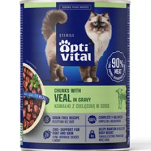 ტროპი - ოპტივიტალი სტერილიზებული, ზრდასრული კატისთვის საქონლის ხორცით 415 გრ